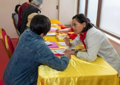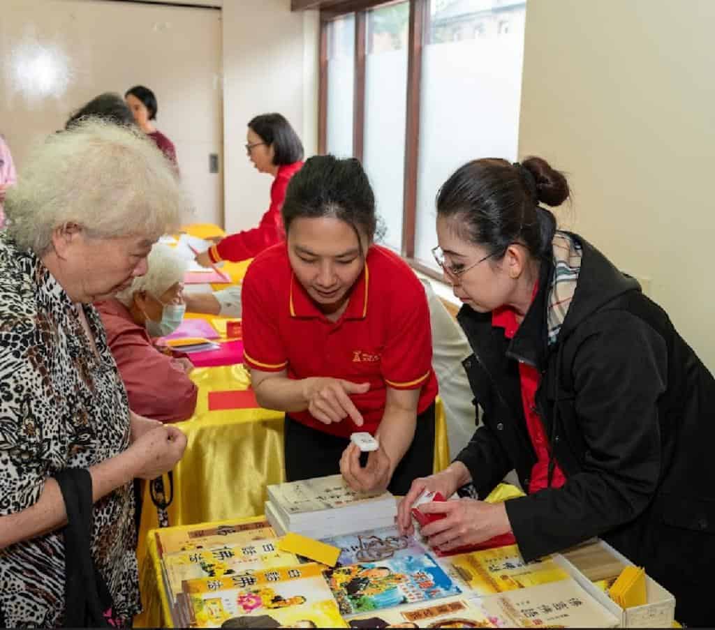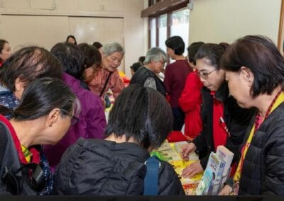 當天來參加的佛友們是從四面八方遠道而來的!大家認真得念誦祈福詞。聆聽了關於環保吃素,和一位師兄的分享,在品嘗了精美的素食後,主持人與佛友們積極互動起來,並且前去結緣處結緣了很多佛學書籍,播放機和經書。