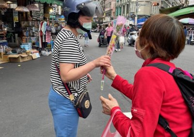 此次活动取得了巨大成功,参与者热情非常高涨。许多人都非常渴望获得一朵康乃馨并与观音堂建立联系。有人请求额外赠送康乃馨,其中一人还开玩笑地说要带回家给自己的”三个太太”。